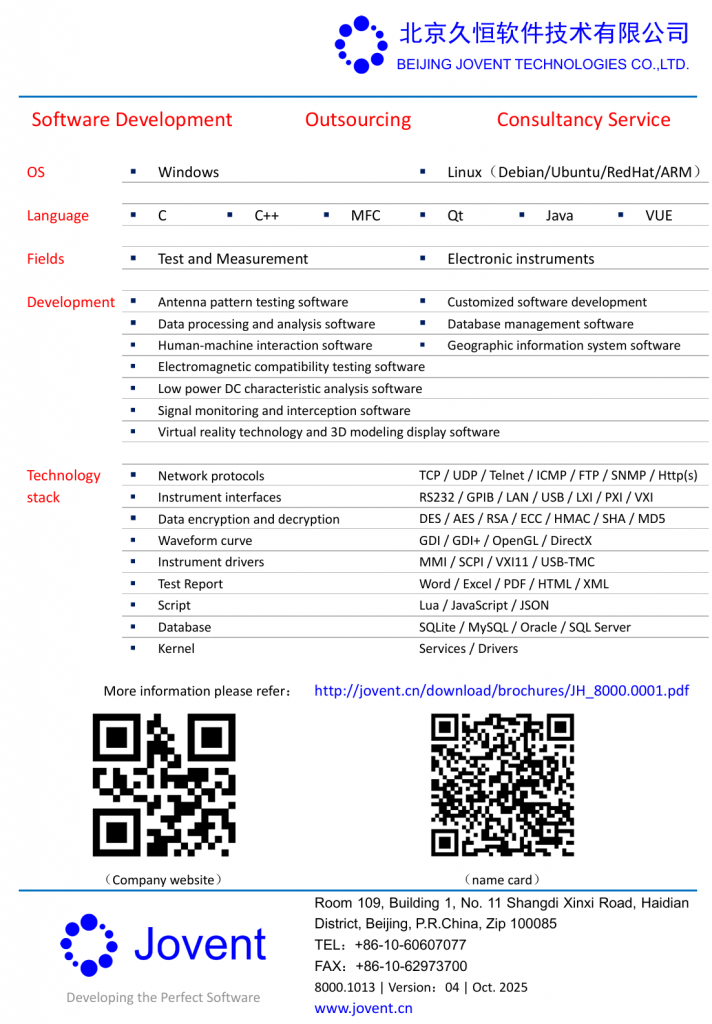 We provides software outsourcing services in the field of instruments and testing measurement for customers, please view our business profile fly sheet:
